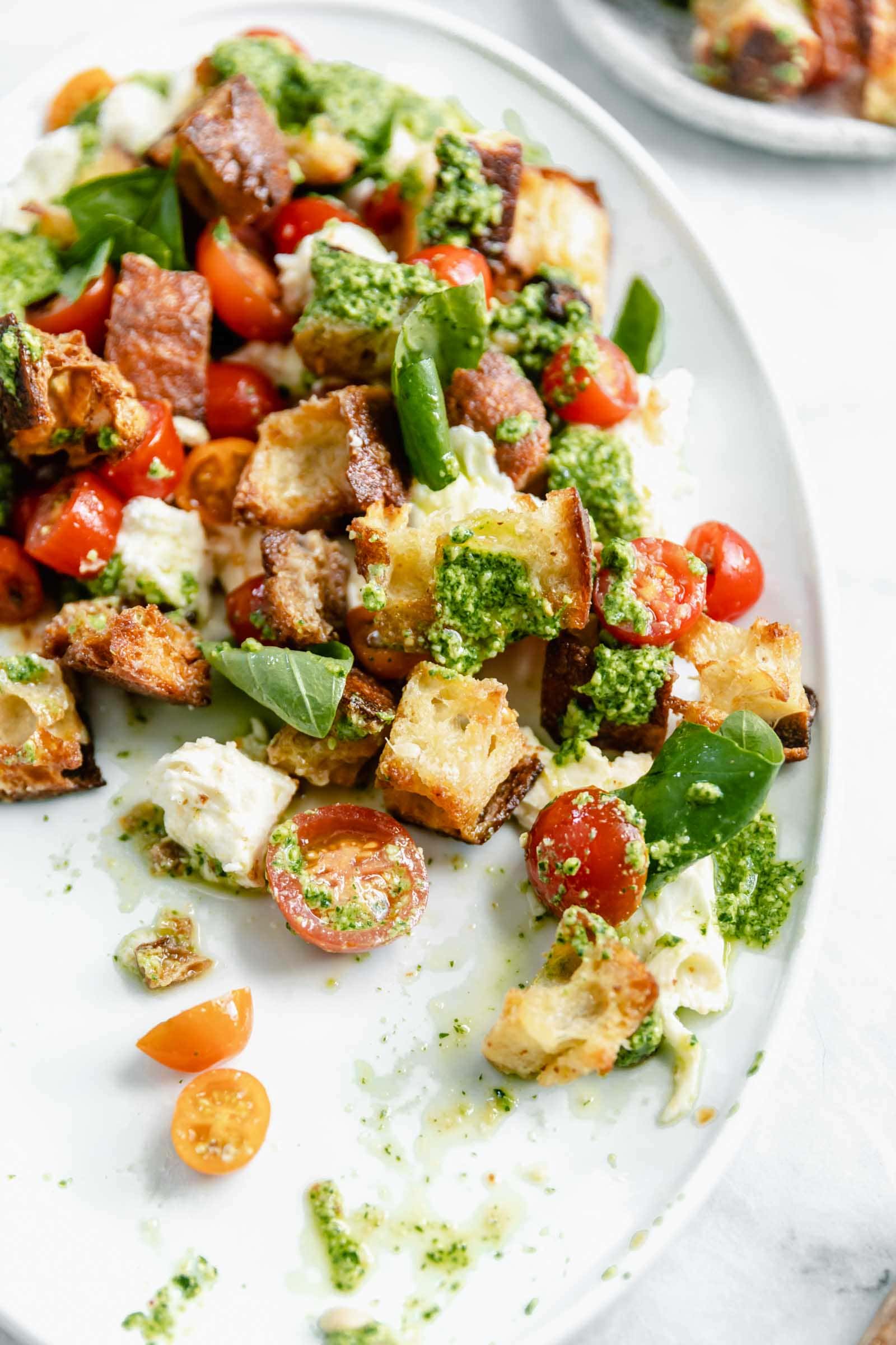 Pesto Caprese Panzanella Salad AKA the ultimate summer salad